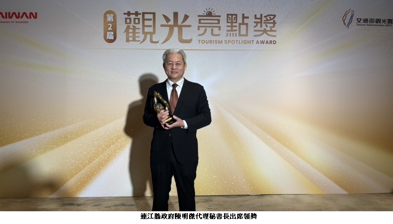 今(11)日交通部觀光署於台北遠東香格里拉飯店3樓宴會廳舉辦第2屆「觀光亮點獎」頒獎典禮暨百大亮點發表記者會,邀請交通部林國顯次長及觀光署陳玉秀署長親臨頒獎,向所有得獎單位表達肯定與鼓勵。這次連江縣政府由陳明傑代理秘書長代表出席並領獎,現場氣氛熱烈,為馬祖再添榮耀時刻。
