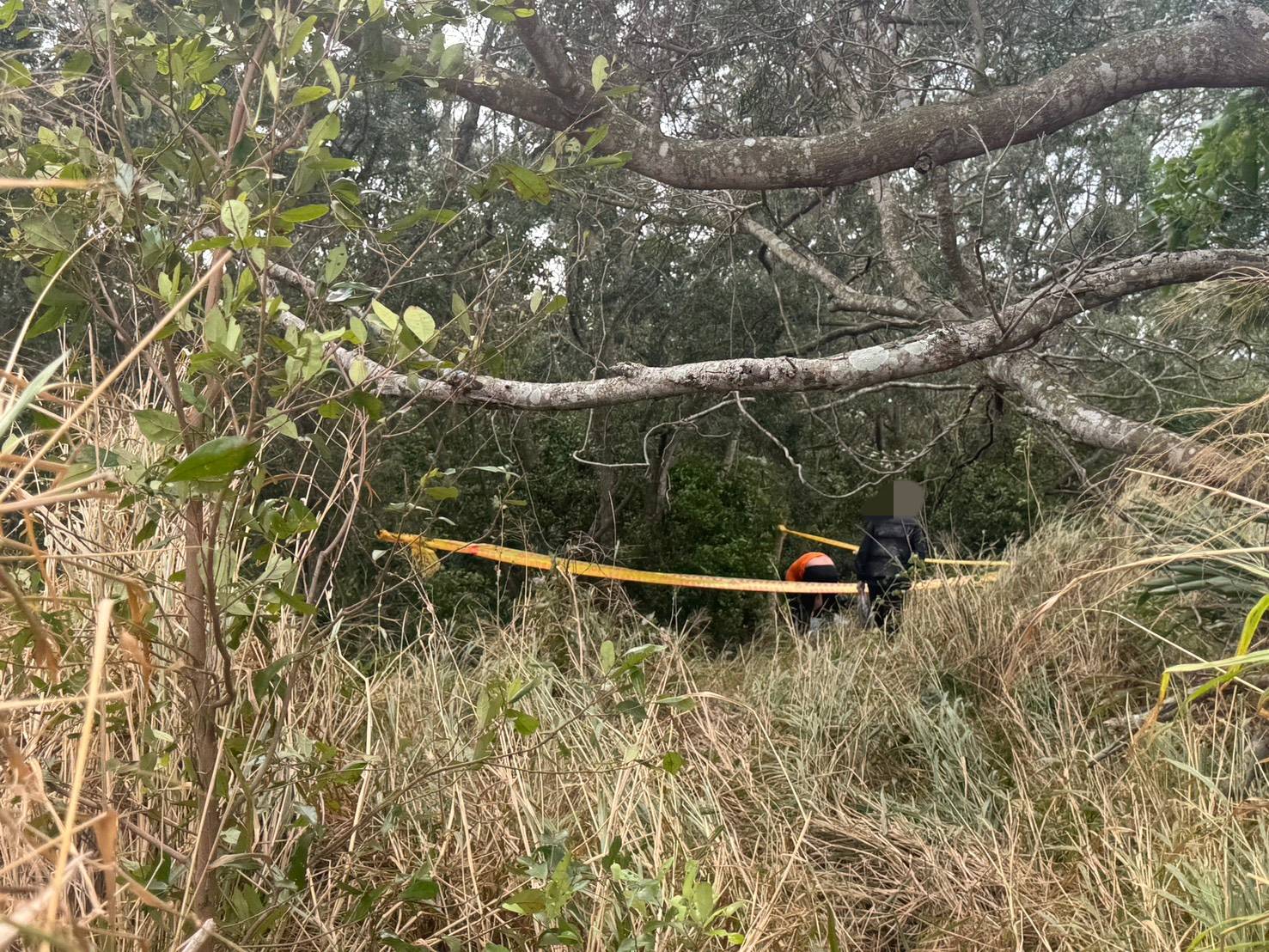 台中烏日男子陳屍草叢中,警方封鎖現場蒐證調查。翻攝畫面