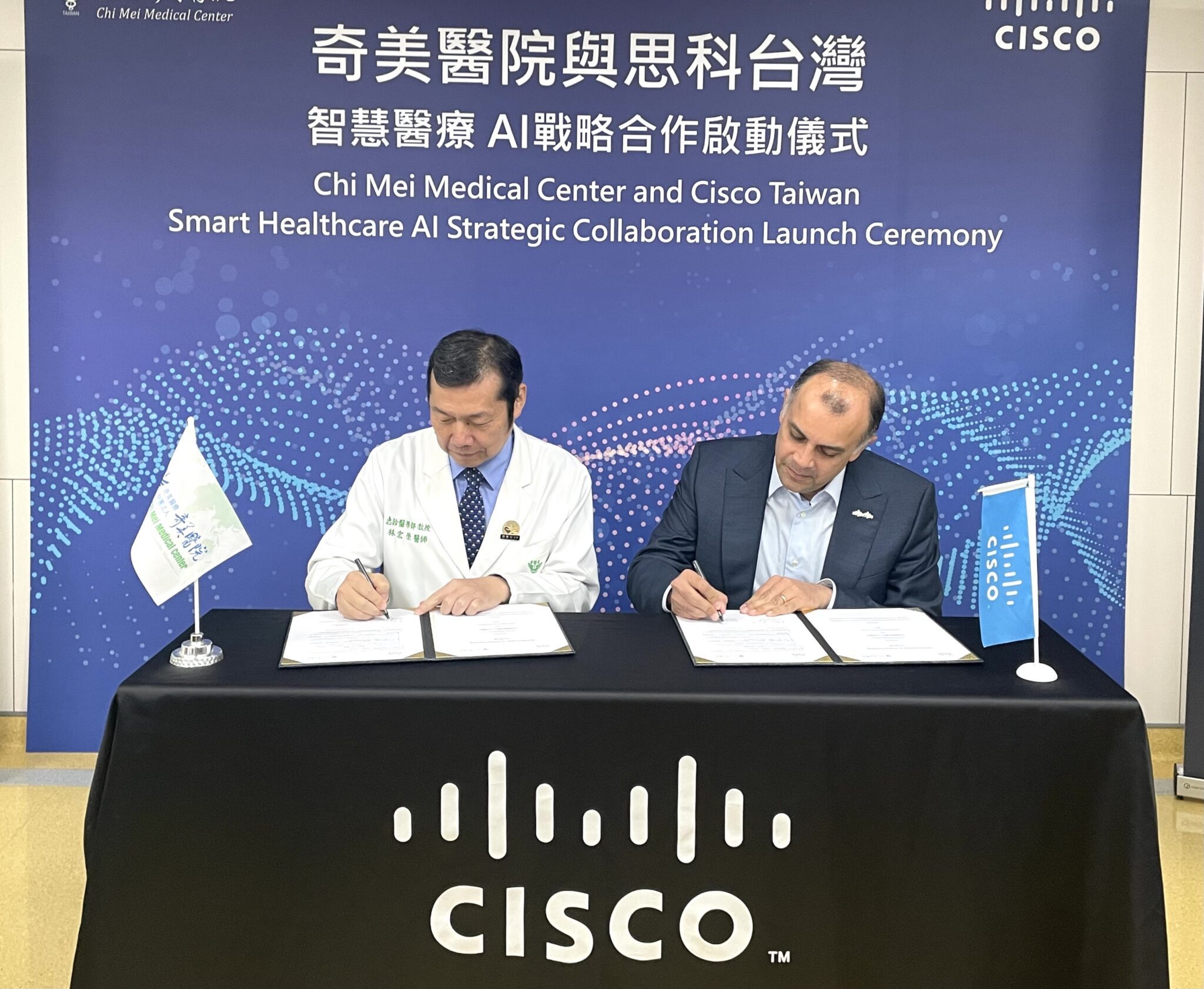 奇美醫院與全球網路及安全領導品牌思科(Cisco)今(11/24)日舉辦「智慧醫療AI戰略合作啟動儀式」,由奇美醫院院長林宏榮、思科全球數位影響力發展辦公室亞太區總監Clarence Barboza代表雙方簽署合作備忘錄,正式宣布進行戰略合作,攜手推動臺灣AI智慧醫療發展。