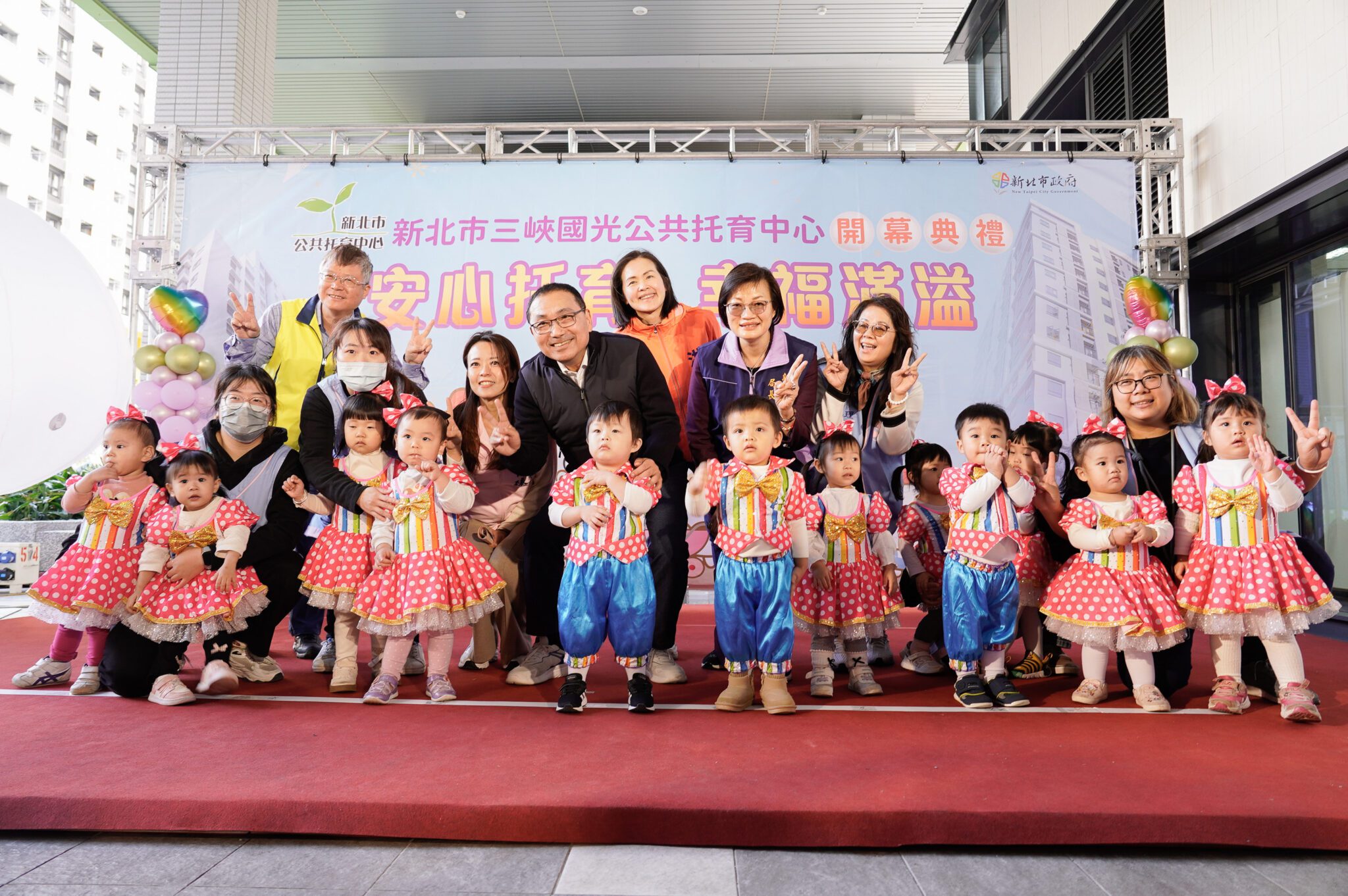 新北市第128家公共托育中心「三峽國光公共托育中心」今(29)日正式啟用,為三峽區第5處公托,設於三峽國光二期青年社會住宅內,可收托45名0至2歲嬰幼兒,也是新北市第7處結合社會住宅公益空間設置的公托中心。中心融入在地「藍染」美學,推動品德教育與親子共讀,並串聯周邊多元福利設施,打造全齡共融的育兒環境。 侯友宜與幼兒互動。(新北市政府提供) 侯友宜護著幼童走「台步」。(新北市政府提供) 新北市長侯友宜表示,新北市目前已有128家公托,可收托6,455名幼兒,加上250家私立托嬰中心,整體可收托1萬6,496人,若再結合居家托育服務,家外托育率已正式突破45%,居全國之冠。 新北第128家三峽國光公托正式啟用。(新北市社會局提供) 侯友宜指出,三峽國光二期社宅位於北大特區,生活與交通機能成熟,除公托外,亦設有非營利幼兒園、長照日照中心及銀光咖啡館等設施,並鄰近學校、公園與商圈,未來捷運三鶯線通車後,將更能滿足跨代家庭需求 侯友宜也在參觀中心設施時,與家長及幼兒互動,見到育有5名子女的年輕父母,笑稱「多生很幸福」,現場氣氛溫馨。 侯友宜也說,明(115)年1月將再於板橋及泰山增設2處公共托育中心,持續擴充平價、優質托育量能,陪伴家長共同照顧下一代。 承辦單位中華傳統文化教育推廣協會理事長傅麗娜表示,中心以品德教育為核心,結合三峽藍染工藝進行空間設計,並運用戶外露臺打造五感體驗環境,教學採取引導探索方式,另編製專屬繪本與家長手冊,推動親子共讀,並規劃藍染手作課程深化在地連結。 社會局長李美珍說,三峽國光公共托育中心即日起開放網路報名,期間自今日下午2時30分至115年2月3日下午5時止,家長可至「新北育兒資訊網」登記;若超額,將於2月5日上午10時公開抽籤,並於當日下午2時公告錄取名單。更多公共托育中心資訊,請至新北市政府社會局網站、「新北育兒資訊網」及「友善公托、幸福新北」Facebook粉專查詢。