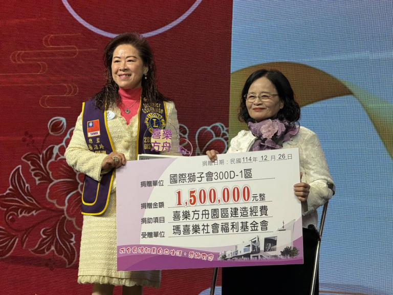 國際獅子會300D-1區總監蔡沼玲表示,獅子會長年關注社會弱勢需求,特別是身障者就業突破不易,方舟園區的建置是極具意義的關鍵工程。「方舟園區是讓身心障礙者靠自己的雙手站起來的重要基地,我們不只是給魚吃,更要給釣竿,讓他們能自立、能回饋社會。」蔡沼玲指出,今年再次號召眾人共襄善舉,募款金額達150萬元,希望透過企業、獅友與社會的串連,讓愛心接力不斷延伸,「每一分力量,都能讓更多家庭多一份希望,這份陪伴是最溫暖的聖誕禮物。」