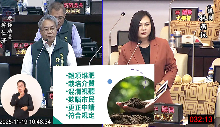 臺南市議員林燕祝總質詢時指出市府農業局在廚餘養豬查緝上漠視民眾舉發等多項不當作為。環保局將「尚好肥」堆肥稱為「培養土」,恐涉未經申請核准登記擅自製造肥料,等同官方違法欺瞞市民,且兩座廚餘高速發酵廠啟用多年仍需大量人工作業,空汙等設備與建築物也被疑不符規定,林燕祝要求市府盡速改善並嚴查違規業者。