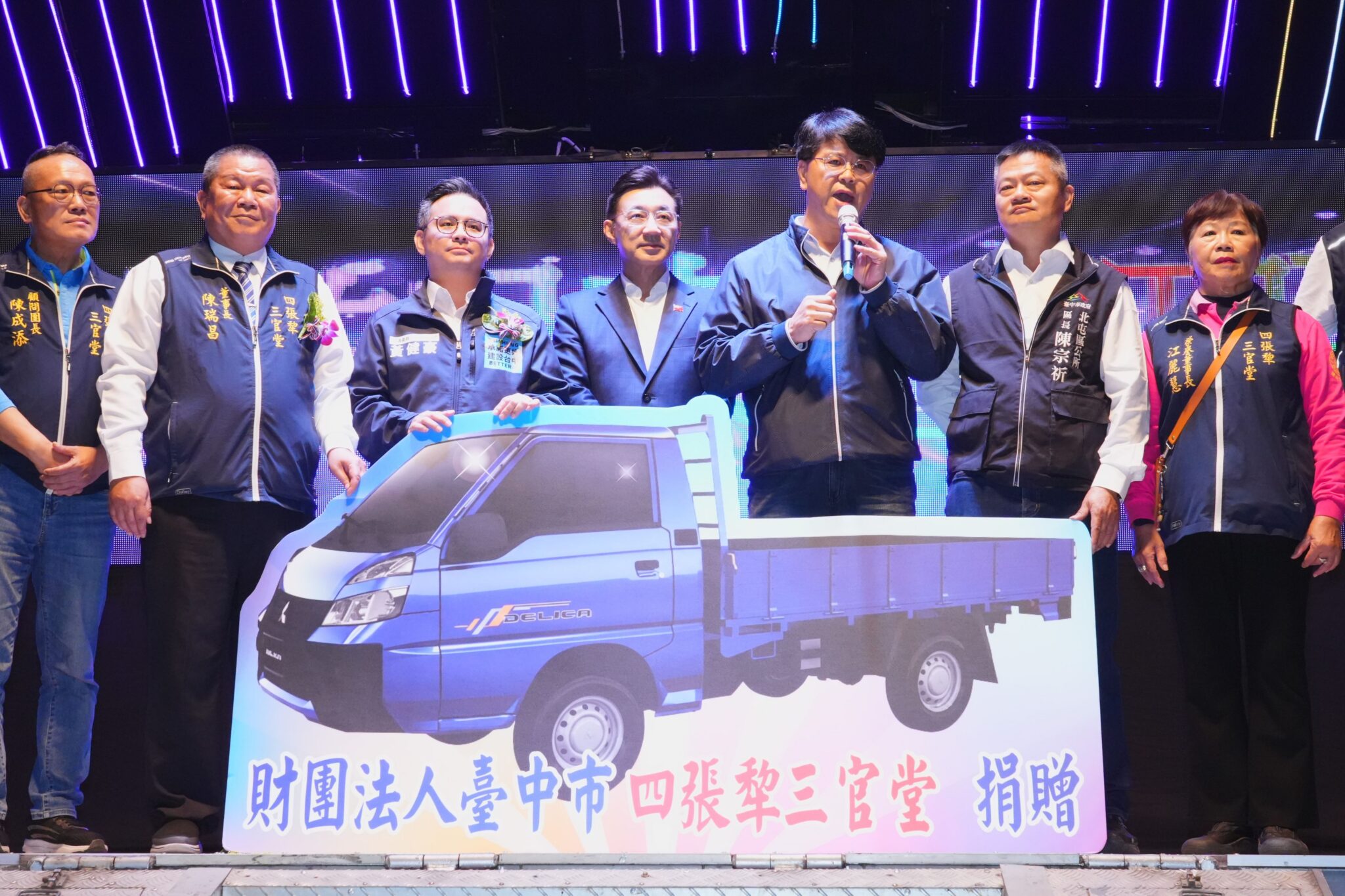 彭副局長指出,四張犁三官堂歷史悠久,主祀三官大帝,是當地重要的信仰中心,長期深耕在地文化、公益服務及社會關懷,並多次獲市府「績優宗教團體」肯定,展現其在宗教文化推廣與社會公益上的重要影響力。今年適逢建廟190周年,廟方除精心籌劃系列慶典外,也特別捐贈北屯區公所一台公務貨車,協助提升地方行政與社區服務效能,感謝董事長陳瑞昌帶領團隊,讓宗教力量成為地方的溫暖後盾,並祝福在三官大帝庇佑下,市民平安健康、台中和順安泰。