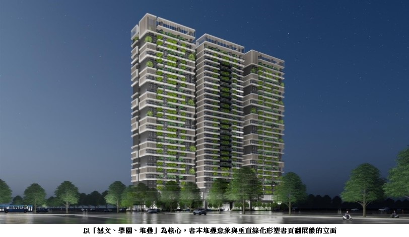 隆大營建股份有限公司陳武聰董事長致詞表示,感謝有此機會持續投資高雄,建築師介紹本案以「藝文、學園、堆疊」為核心概念,將書本堆疊意象轉化為建築語彙,透過錯層陽台、水平線條與垂直綠化設計,形塑如書頁翻展般的立面節奏,全案將依規劃取得銀級綠建築標章與耐震標章,並導入雨水回收、透水鋪面與多層次綠化設計,朝向低碳、永續與高安全標準邁進。