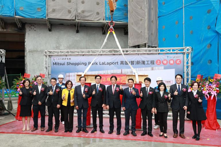 台灣三井不動產斥資百億元,於高雄衛武營東側打造全台第三座「Mitsui Shopping Park LaLaport」,今(19)日舉行工程上樑典禮,市長陳其邁親自出席,與台灣三井不動產董事長久一康洋及多位貴賓共同見證鳳山重大商業投資案的階段性成果,並感謝企業看好高雄,投資高雄,也期望打造一座南台灣購物娛樂新地標。