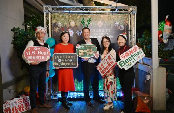 圖:美國肉類出口協會駐華辦事處與美國在台協會農業單位代表,共同推廣美國牛肉於節慶餐桌的多元應用。(左起)美國肉類出口協會駐華辦事處經理 Alex、美國在台協會農業貿易辦事處總監 Kathy Yao、美國在台協會農業組組長 Morgan Haas、美國在台協會農業貿易辦事處行銷經理 Cleo Fu、美國肉類出口協會駐華辦事處 Belle。