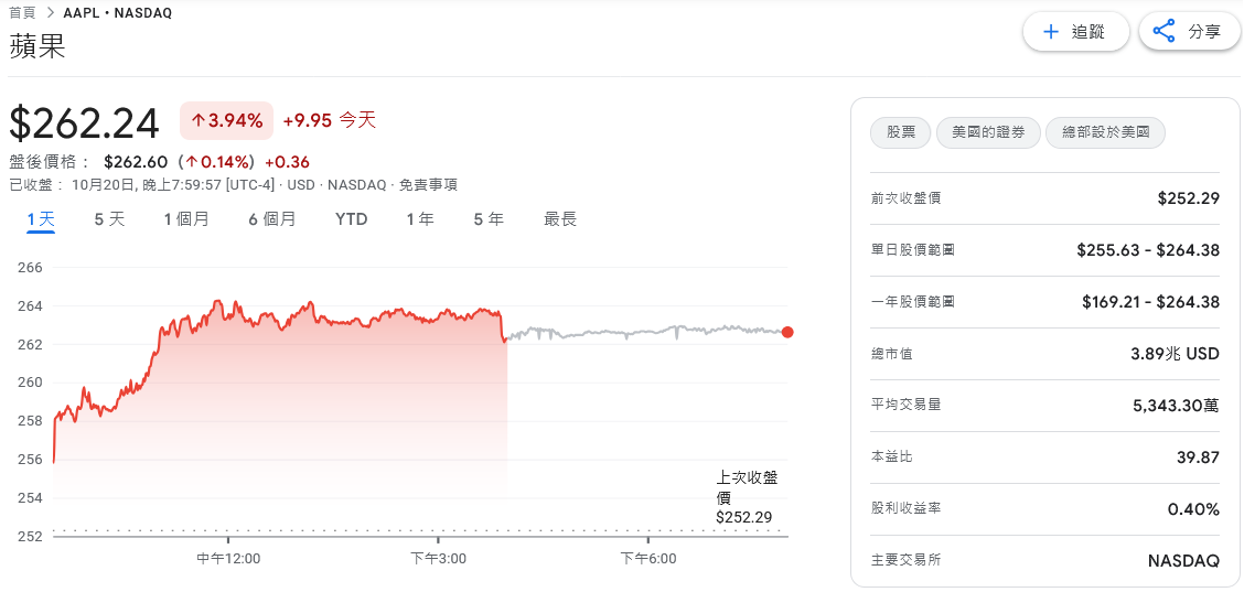 蘋果執行長庫克(Tim Cook)上週親赴中國拜訪員工與政府官員,並出席iPhone Air上市活動,被視為強化中國市場關係的重要動作。儘管蘋果今年以來股價僅上漲約5%,落後於AI概念股如輝達(Nvidia)、Meta、微軟與Alphabet,但近三個月來已強彈24%,市場普遍看好iPhone 17系列與AI整合應用可為未來營收增長注入新動能。
