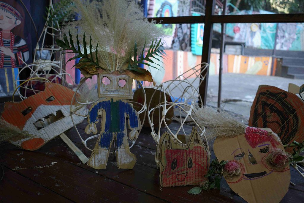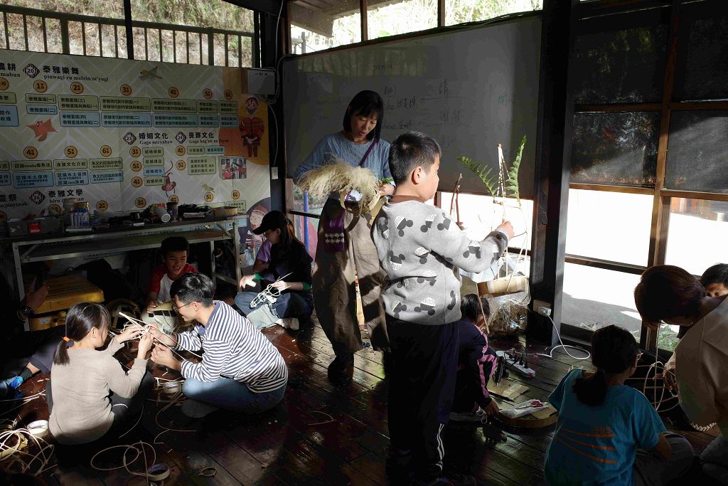 此次合作亦融入博屋瑪國小的泰雅文化課程,藝術家與孩子在工作坊中學習苧麻編織文化,將刮麻、洗麻後的纖維材料裝飾在偶戲面具上。在分享過程中,彼此也交流泰雅族的開墾祭祈福儀式與印尼文化中相似的祭儀傳統。透過雙向學習與交流,孩子們不僅激發對織布與傳統工藝的興趣,也更加認同自身的文化資產。