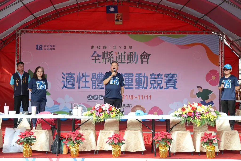 南投縣第73屆適性體育運動競賽9日上午在縣立體育場熱鬧開幕,來自全縣60多所學校與社福團體的近1,500位身心障礙選手齊聚參賽,透過田徑、游泳、桌球、輪鞋競速、地板滾球等多項賽事,展現堅毅、自信與團隊精神,現場氣氛熱烈、掌聲不斷。