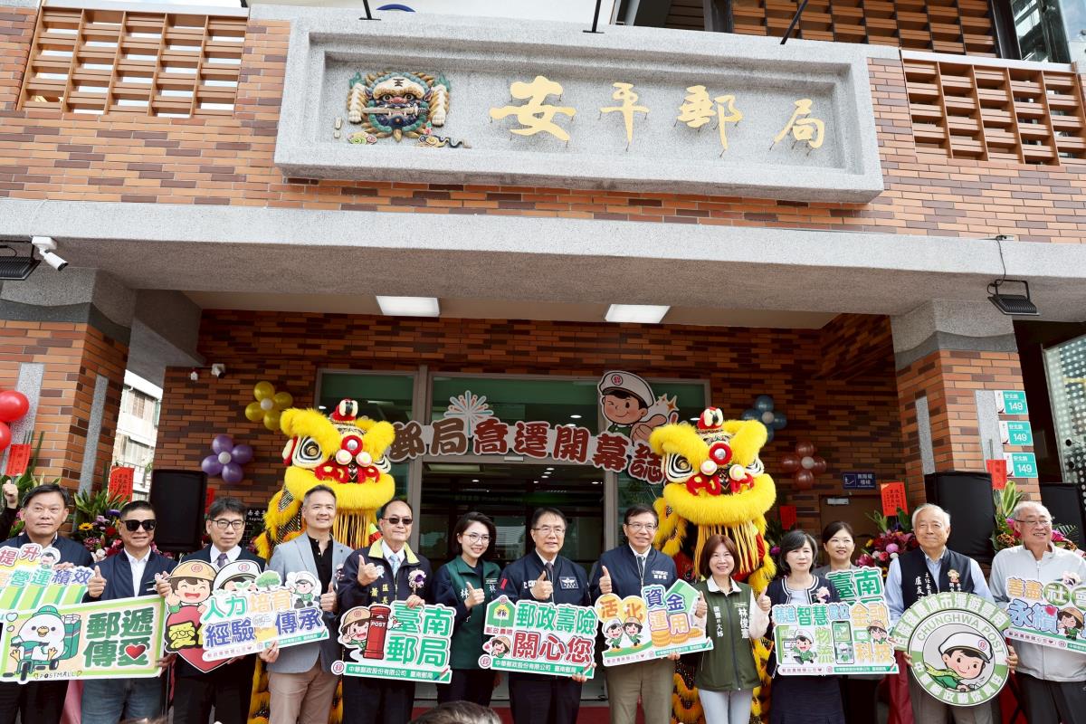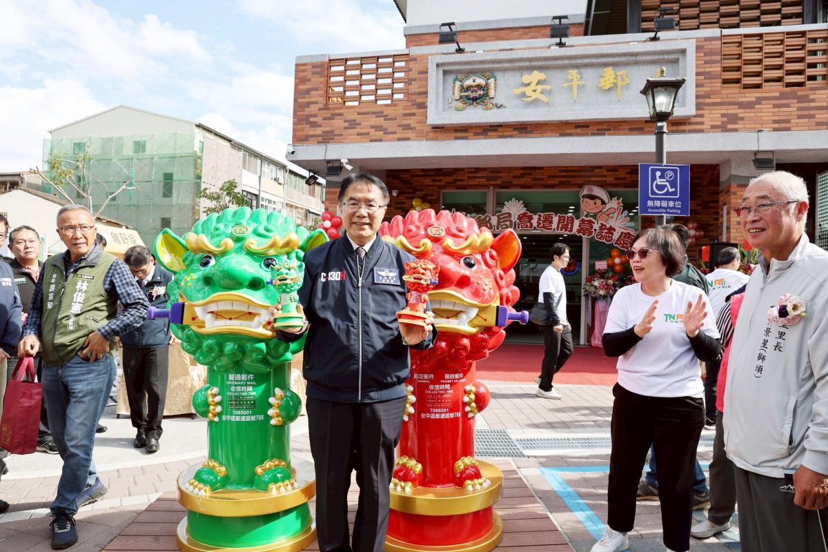 記者黃冠源/台南報導       台南安平再添文化新地標!具有百年歷史的安平郵局歷經原地拆除重建,今(29)日上午舉行開幕典禮,極具特色的「劍獅郵筒」也首度曝光。市長黃偉哲特別親臨祝福,並與中華郵政公司董事長王國材共同揭幕,並植下一株希望樹苗,見證承載百年記憶的安平郵局,以全新面貌嶄新風華再現,邁向下一個百年。   市長黃偉哲表示,感謝中華郵政長期透過郵政商城推廣台南農產,成為農民最堅實的後盾。安平是台南400歷史起源,安平郵局坐落安平古堡對面,地理位置優越,門前極具特色的「劍獅郵筒」更有機會成為新興打卡景點。期盼未來與中華郵政持續合作,帶動地方繁榮。   中華郵政公司指出,喬遷後的安平郵局新址位於安北路149號,與原址僅相距約100公尺,正對一級古蹟「安平古堡」,地理位置優越。為了呼應安平豐富的文化底蘊,本次重建特別打造極具特色的「劍獅郵筒」,內部空間設計更強調明亮舒適。此外,也特別規劃三樓為郵館,提供郵政在職及退休同仁旅遊休憩據點,活化空間運用。未來將持續秉持在地好鄰居的精神,為民眾提供親切貼心的服務。   今日開幕貴賓雲集,包括議員盧崑福、李啟維、林依婷、林美燕出席,立委林俊憲服務處及各議員服務處均派代表到場共襄盛舉。