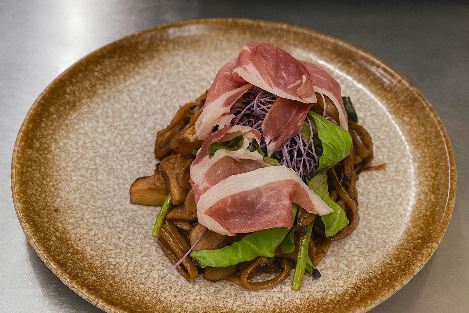 義式手作寬麵搭配鮮嫩火腿與當季蔬菜,呈現《豬露食事》簡樸卻用心的家常味(圖/Medick Marketing Ltd.提供)
