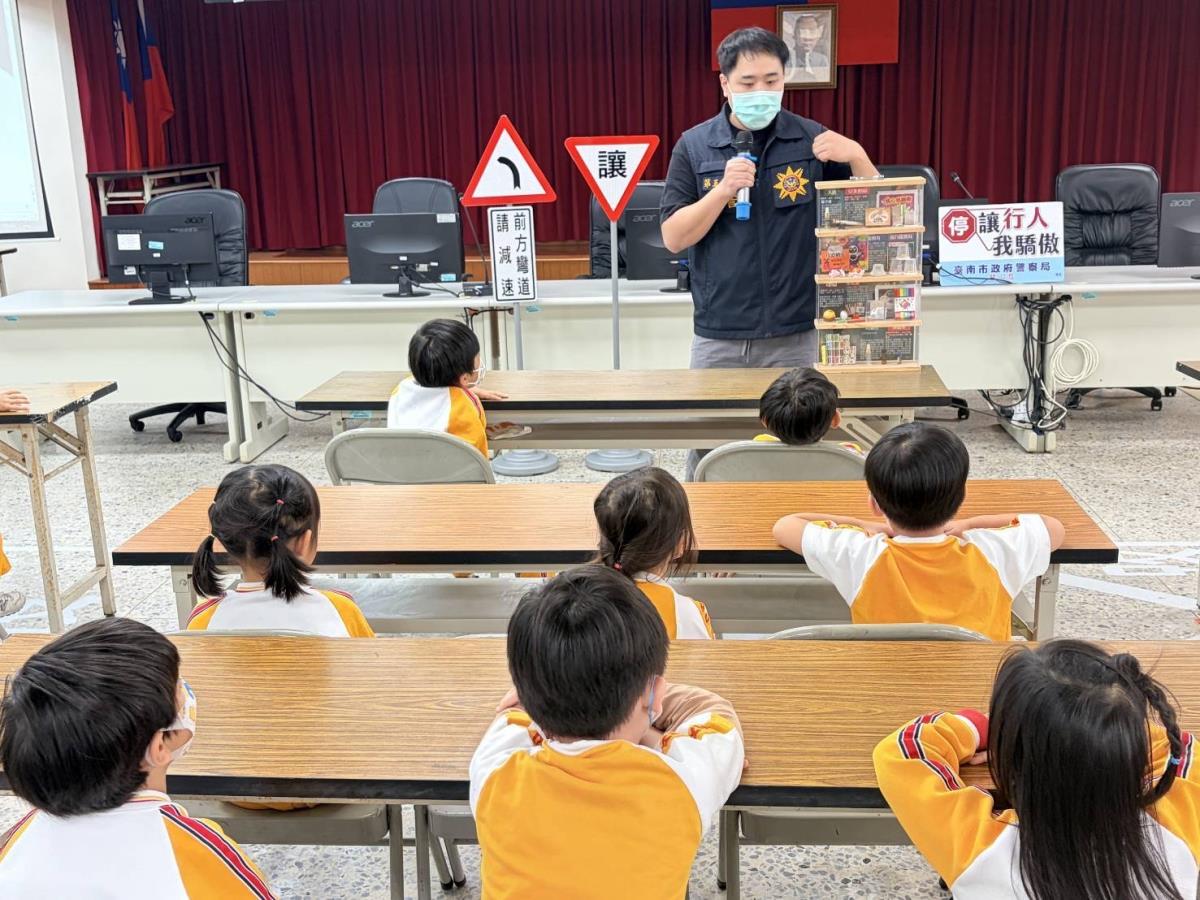 活動過程中,員警引導小朋友參觀分局值班臺、拘留室及巡邏車,並以淺顯易懂的方式介紹警察日常勤務與各項設備功能,讓幼童對警察工作有初步認識,進一步拉近警民距離。交通安全宣導方面,員警以生動活潑的說明方式,向幼童講解「路口安全—過馬路正確觀念」,提醒遵守交通號誌、行走行人穿越道的重要性;同時透過實例說明「大型車內輪差原理及視野死角的危險性」,加深孩子們對大型車輛潛在風險的認識。