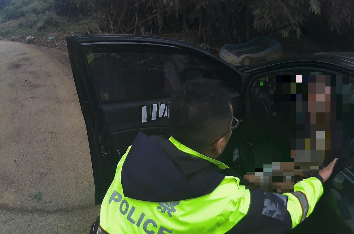 警員蔡秀宏、張登閔當日16時許獲報馳赴現場,先注意到車輛擋風玻璃上的白色尼龍繩,再看到50多歲的男子神情抑鬱坐於車內,兩人立刻請男子打開車門,以柔性口吻勸導男子,男子表示自己從事營造業,今年7月工程因颱風受損,造成數百萬元財務缺口,又恰逢家庭失和,感到萬念俱灰,員警遂帶回派出所並提供茶水及點心,傾聽其心聲。