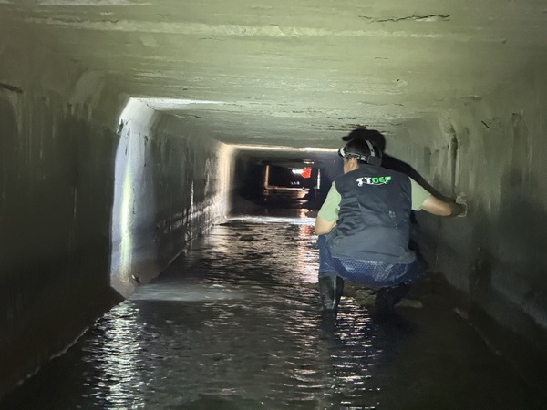 稽查過程中,桃園環保局持續投入大量人力物力,與檢、警、調、環等跨域專業單位緊密合作。稽查人員為了揪出隱藏在地下、難以察覺的偷排暗管,不辭辛勞,冒著惡臭與可能存在的危險,鑽進狹窄的下水道和涵管內部,詳細爬梳檢查每一段管線,最終鎖定了業者私設的繞流暗管位置。