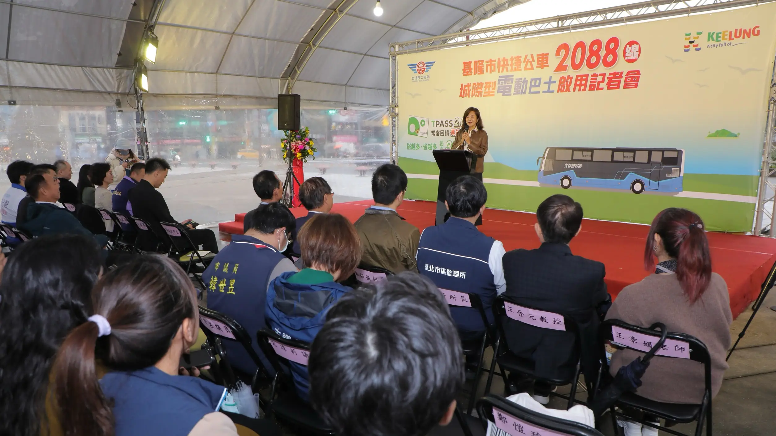 大都會客運今(3)日在基隆國門廣場舉行快捷公車 2088 線「城際型電動巴士」啟用典禮,象徵基隆城際運輸正式邁入電動化時代。基隆市副市長邱佩琳、交通部公路局代表、┬多位市議員及大都會客運團隊皆到場,共同宣布這項交通轉型的重要里程碑。