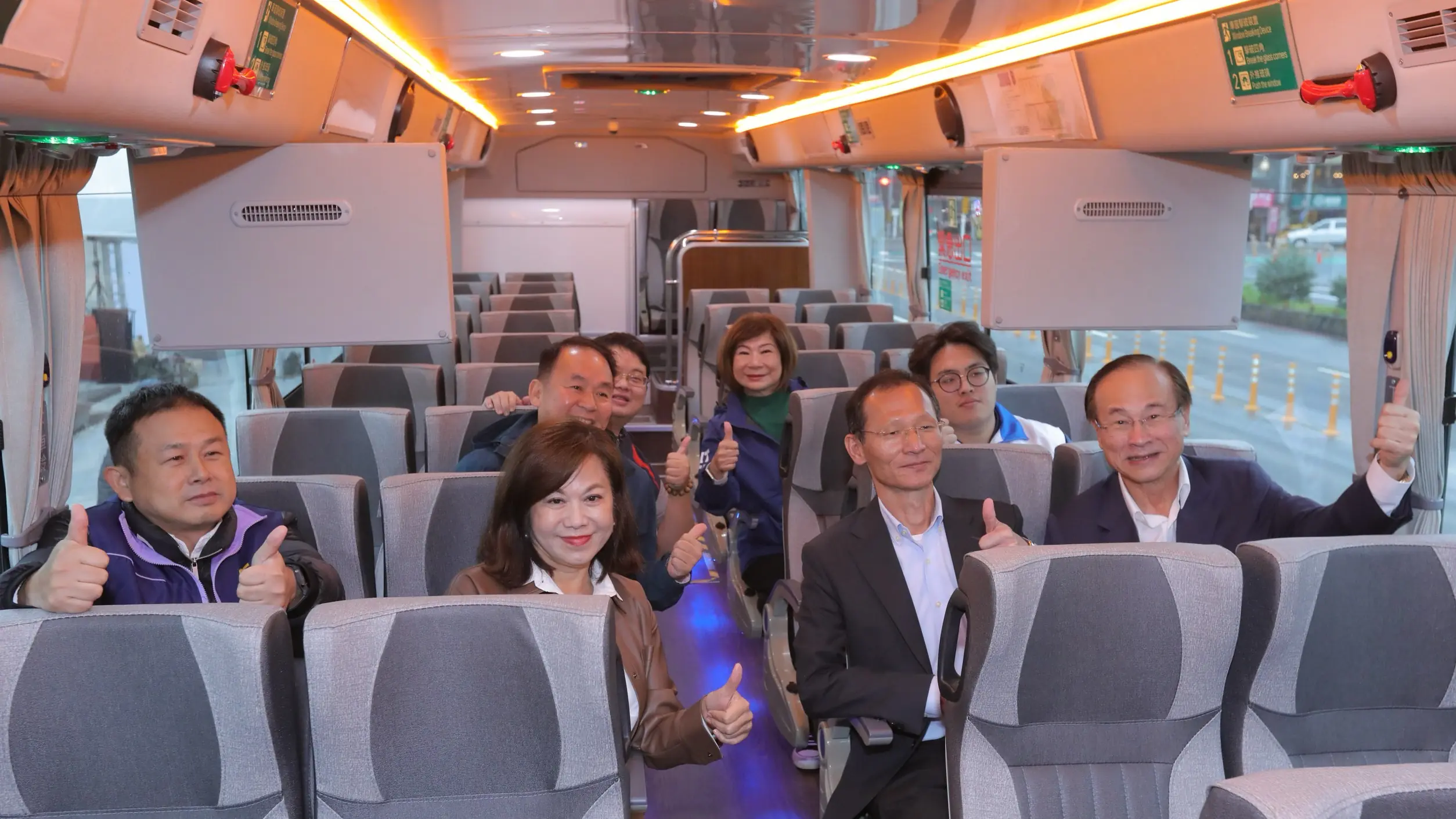 基隆市政府交通處長陳耀川也說,新型電動大客車兼具低噪音、零排放與高續航力,車上更導入多項主動安全科技,包括車道偏移警示、影像監控、緊急煞停輔助系統等,大幅提升行車安全性。車內配備亦全面升級,提供 USB 充電、舒適座椅等貼心設計,讓通勤族在往返基隆與北北基之間能有更友善的乘車體驗。他補充,一輛電動巴士每年可減少約 50 公噸二氧化碳排放,對改善城市空氣品質有明顯助益。